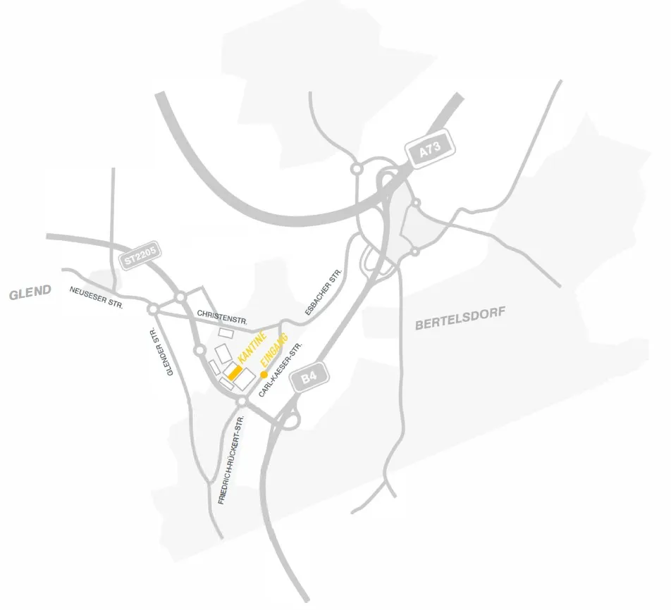 Sie finden uns an der Carl-Kaeser-Str. 26 in Coburg. Es ist einfach über die B4 zu erreichen.
